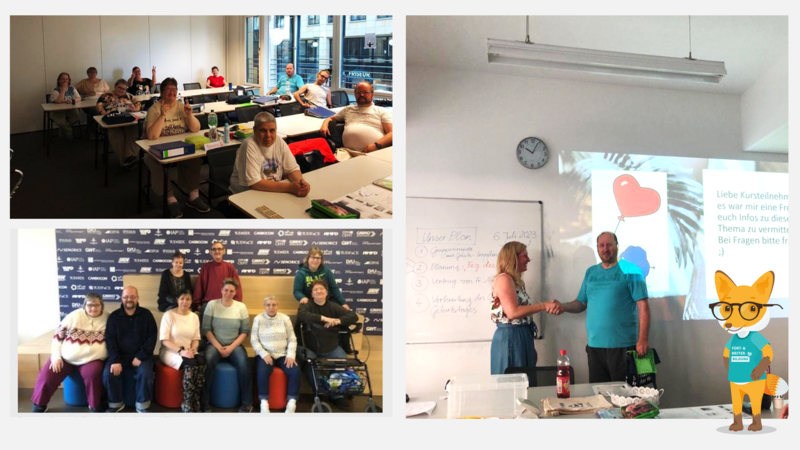 Dieser Kurs sollte ihnen nicht nur dabei helfen, sich weiterzubilden, sondern sie auch motivieren und begleiten, damit sie wieder aktiv am Leben teilnehmen können! Sie sollen zukünftig in der Lage sein, Ehrenämter zu übernehmen oder Praktika sowie Minijobs auszuüben.