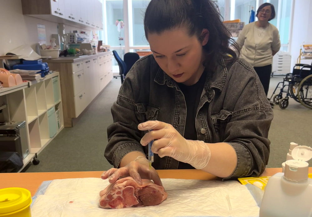 Unsere angehenden Pflegefachkräfte lernen, welche Körperstellen für diese Anwendung geeignet sind und worauf bei der Durchführung besonders zu achten ist. Neben der fachlichen Sicherheit stehen auch Hygiene, Verantwortungsbewusstsein und ein sensibler Umgang mit Patient:innen im Mittelpunkt der Übung.
