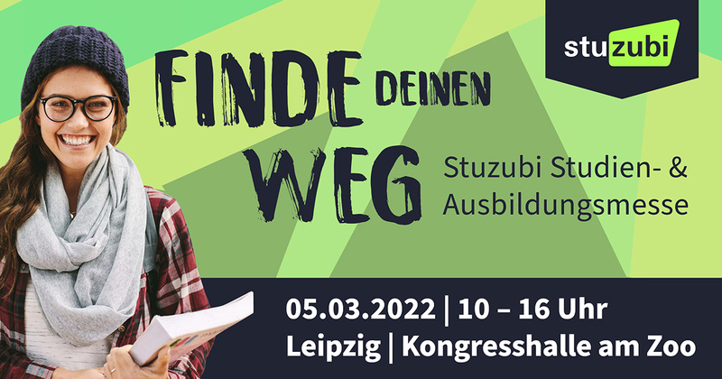 Auf der Studien- und Ausbildungsmesse Stuzubi können sich Jugendliche und ihre Eltern am Samstag, 5. März 2022, in der Kongresshalle am Zoo in Leipzig zwischen 10 und 16 Uhr über aktuelle Studien- und Ausbildungsangebote informieren.
