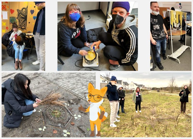 Und auch die Bewegung an frischer Luft ist nicht zu kurz gekommen. Bei einem Ausflug ins Wuhletal konnten die ersten Winterlinge und Frühblüher entdeckt und Mandalas aus Naturmaterialien gelegt werden.